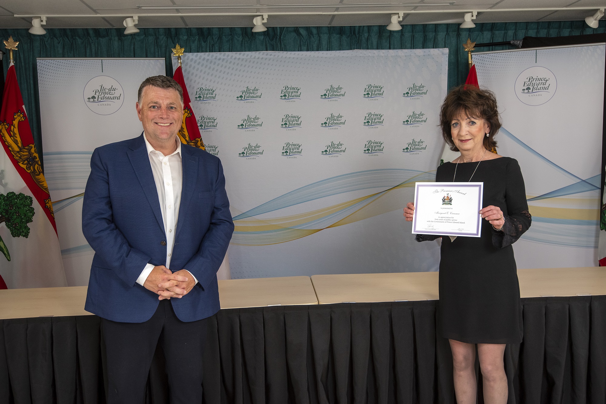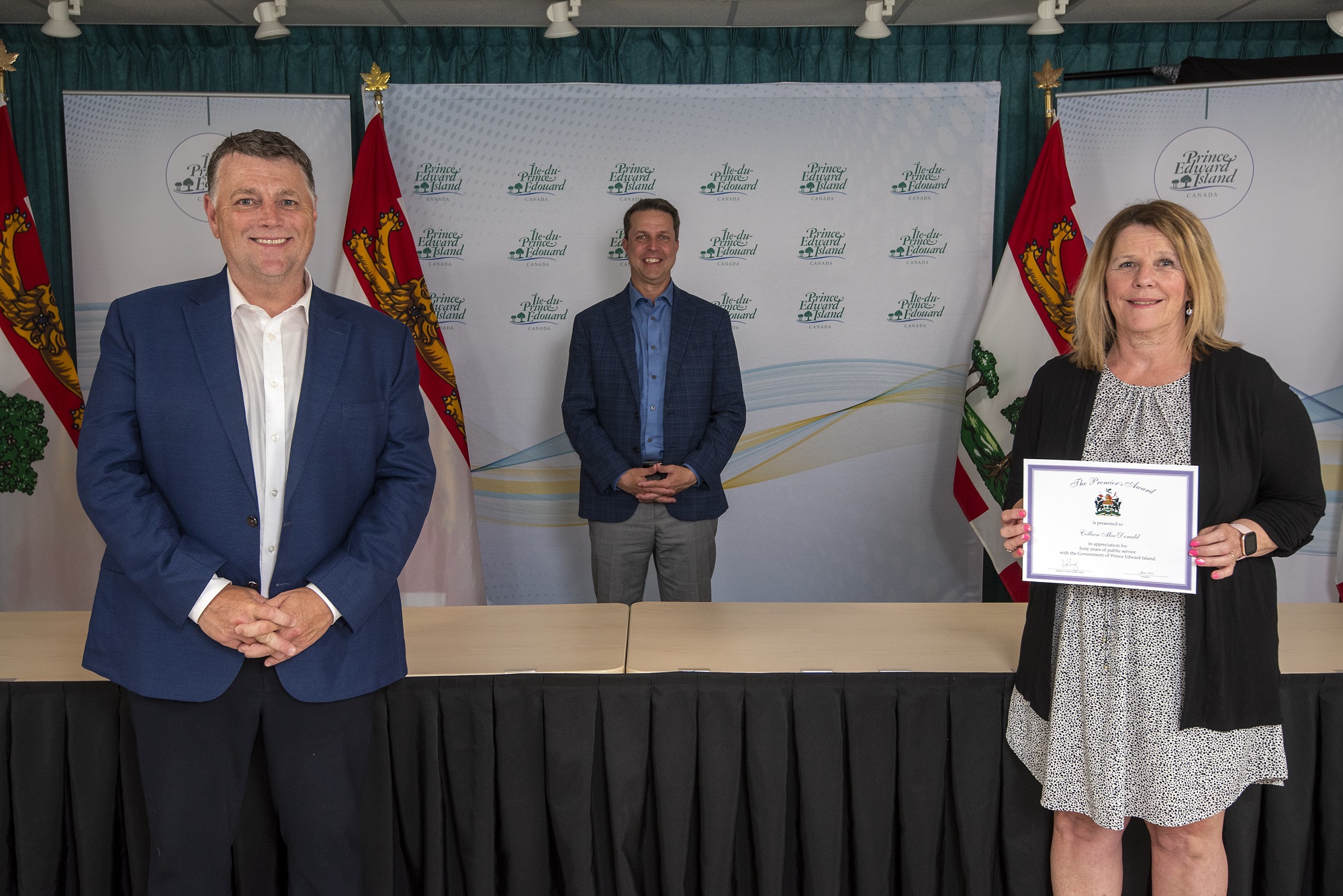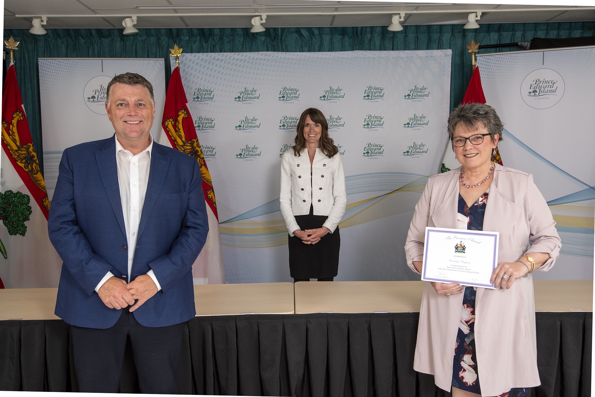 Premier Dennis King, Hon. Matthew MacKay and Pamela Gorveatt