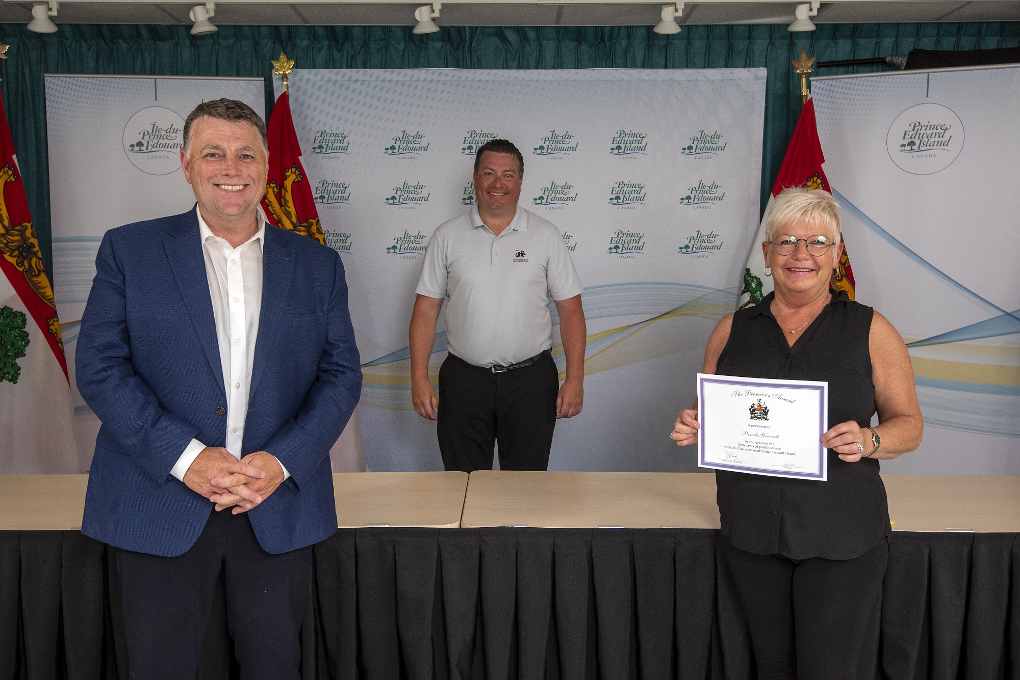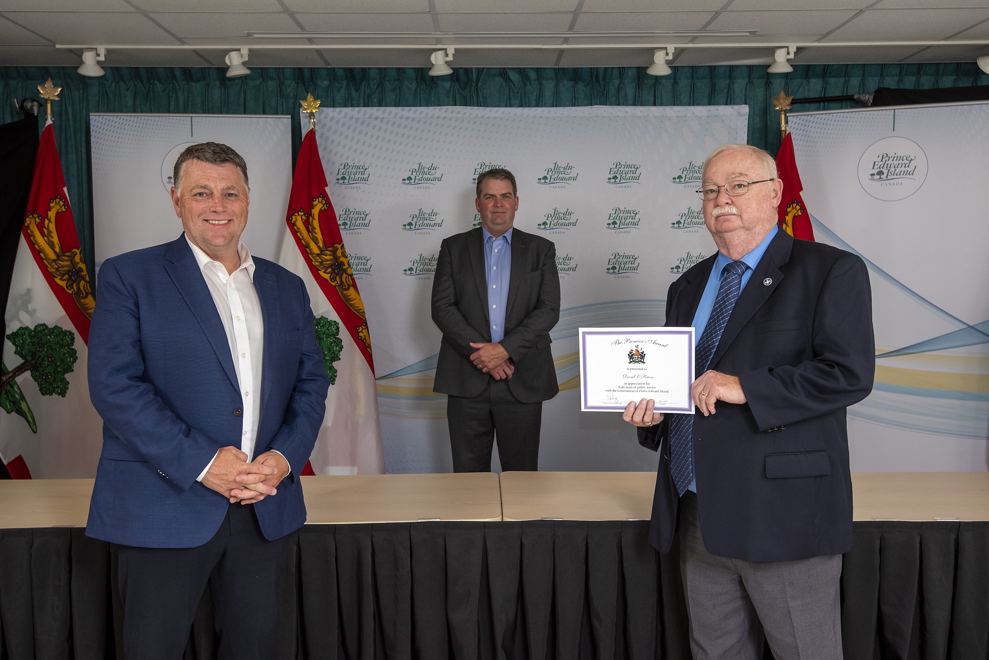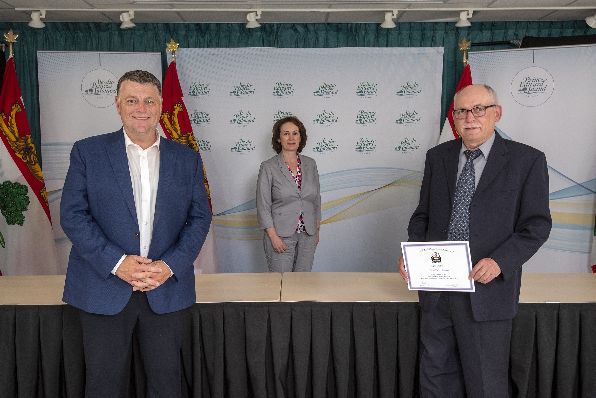 Premier Dennis King, Deputy Minister Denise Lewis-Fleming and David Stewart