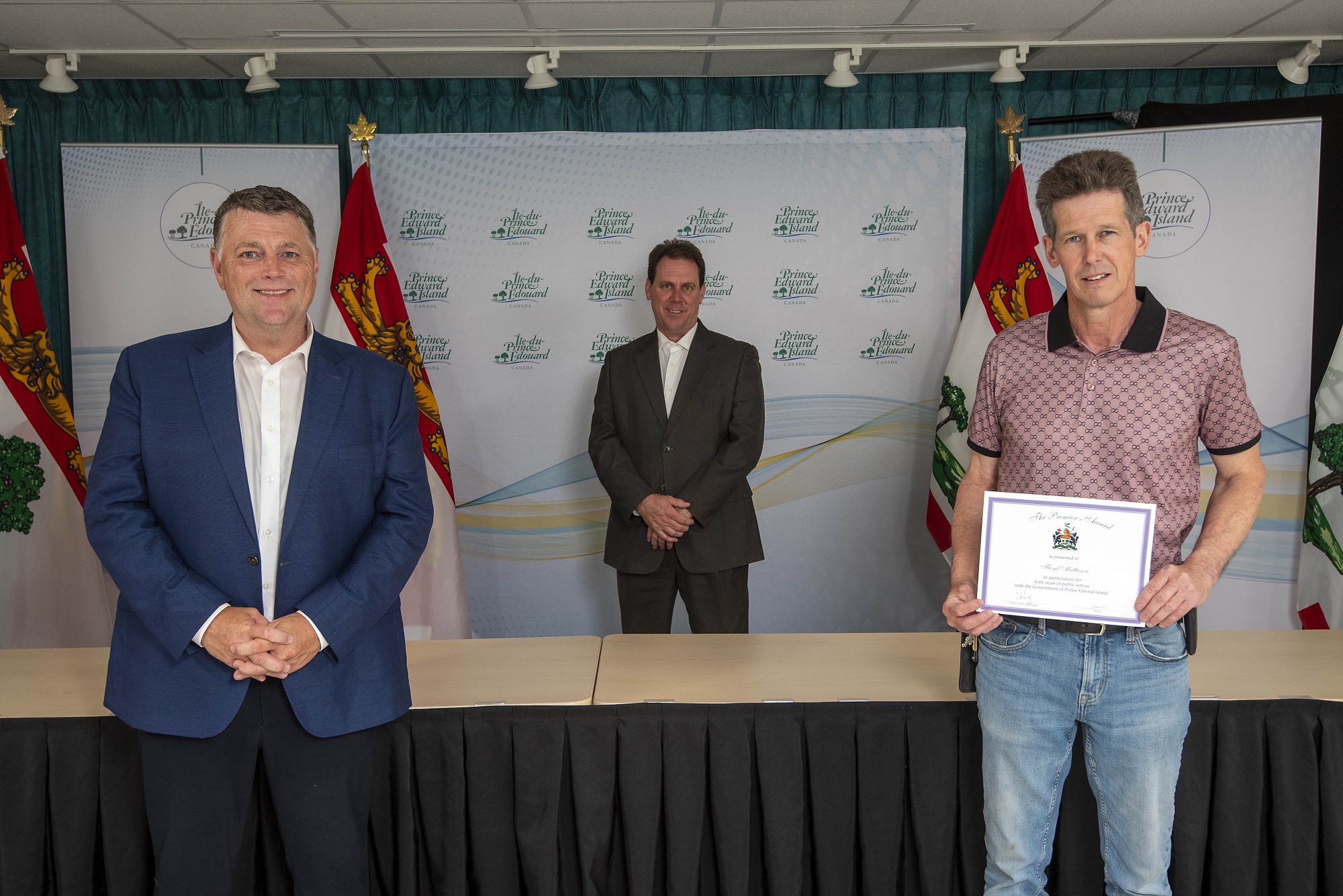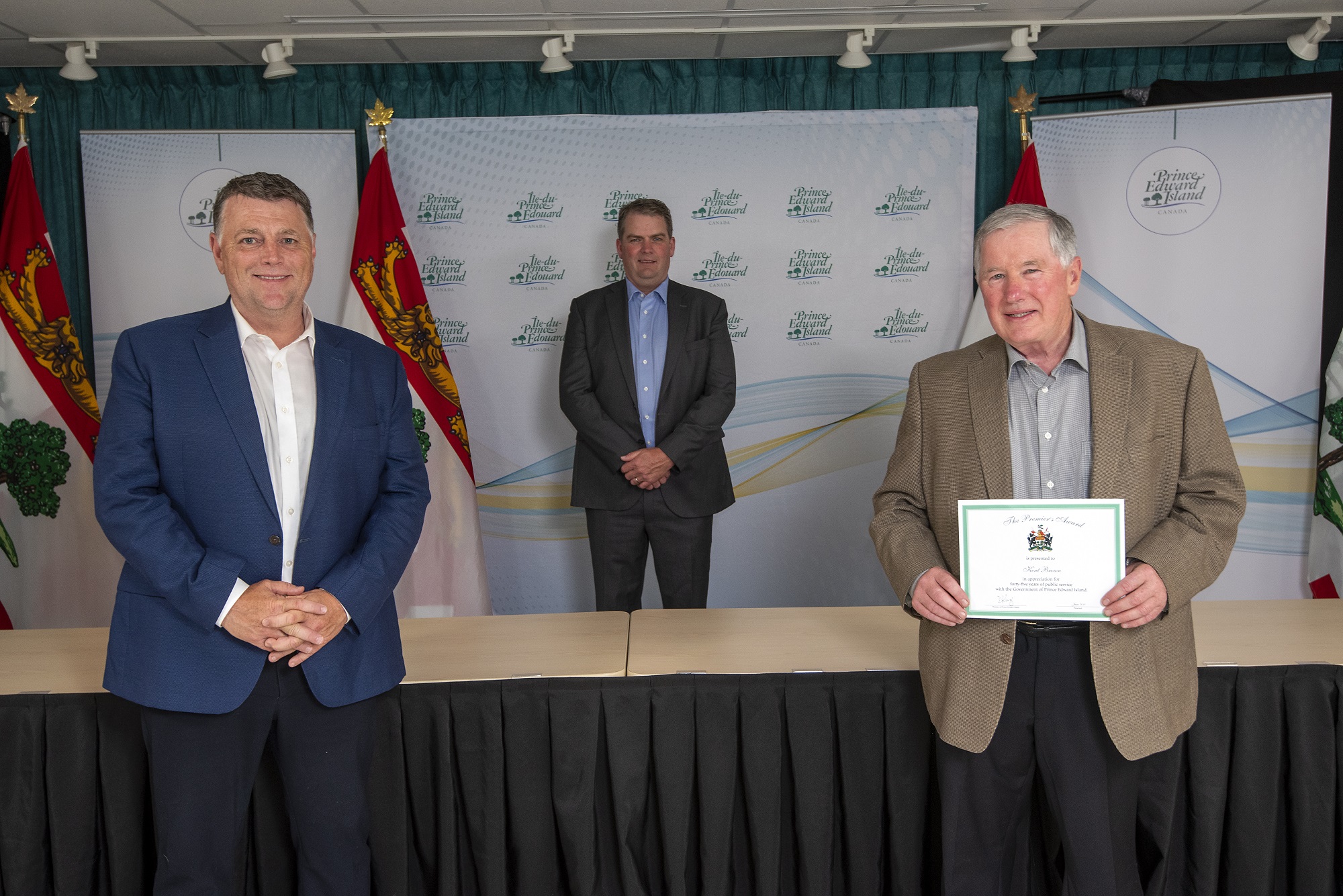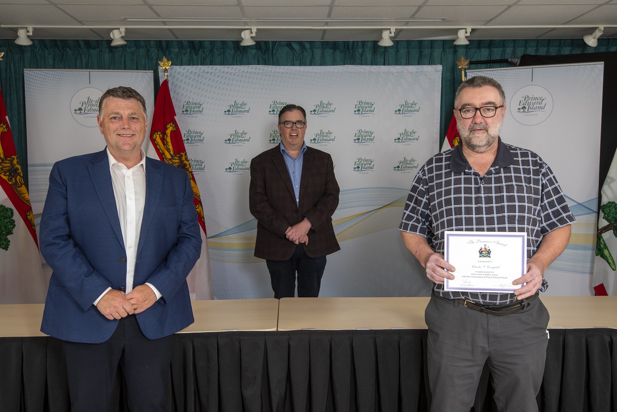 Premier Dennis King, Deputy Minister Denise Lewis-Fleming and David Stewart